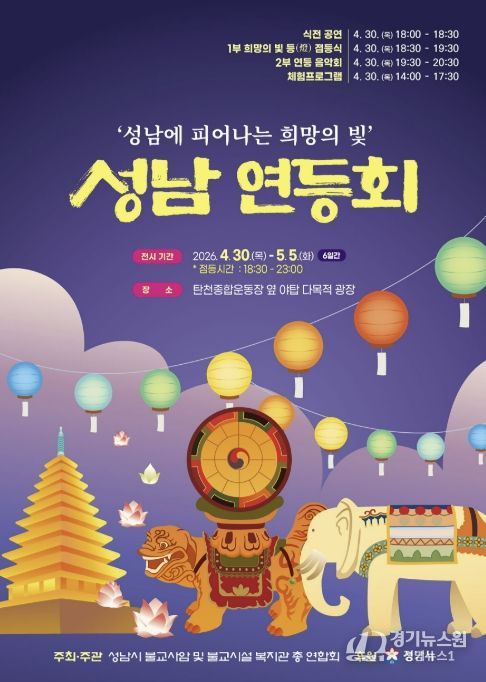 [경기뉴스원/경기뉴스1] | ‘2026 성남 연등회’가 오는 4월 30일부터 5월 5일까지 엿새간 분당 탄천 야탑 다목적광장(탄천종합운동장 앞)에서 열린다.