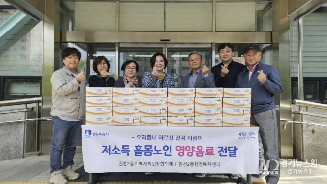 [경기뉴스원/경기뉴스1] | 수원시 권선구 권선2동 지역사회보장협의체는 지난 23일, 저소득 홀몸노인 건강증진과 정서적 안정을 위한 “우리 동네 어르신 건강지킴이 영양음료 전달사업”을 진행했다.