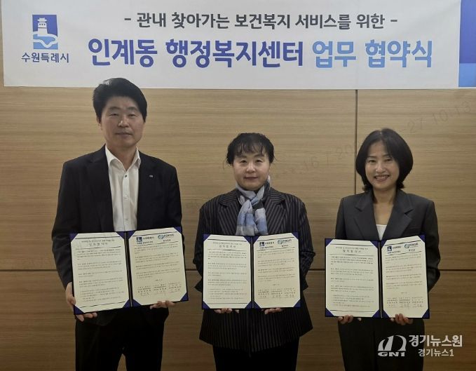 [경기뉴스원/경기뉴스1] | 수원시 팔달구 인계동은 지난 24일, 지역사회보장협의체과 한전MCS(주) 경기지사 및 직할지점과 함께 취약계층 발굴과 지속적인 인적안전망 활동 참여를 위한 업무 협약을 체결했다.