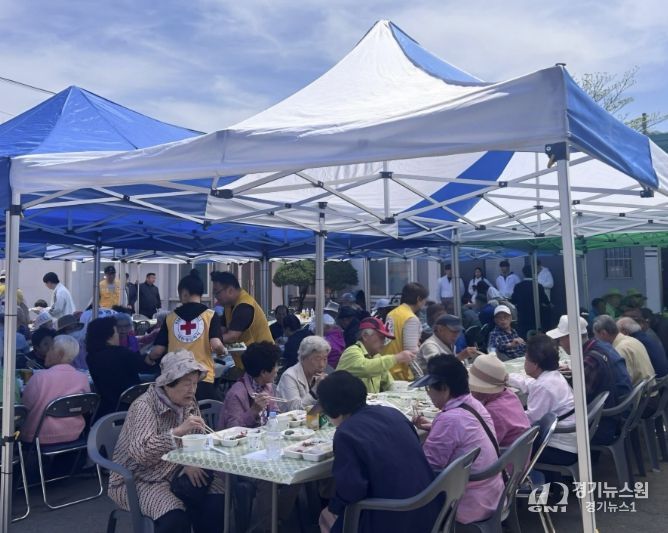 [경기뉴스원/경기뉴스1] | 대한적십자사 연천봉사회는 지난 26일 연천읍행정복지센터 주차장에서 지역사회 어르신들을 위한 따뜻한 나눔 행사인 ‘사랑나눔 경로잔치’를 개최했다.