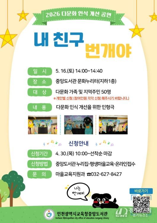 [경기뉴스원/경기뉴스1] | 인천광역시교육청중앙도서관은 오는 5월 16일 다문화 인식 개선 공연 ‘내 친구 번개야’를 운영한다.