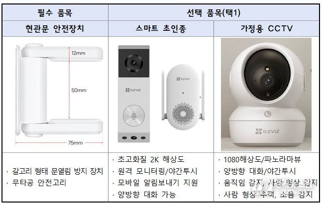 ‘은빛SOL 안심홈세트’는 기본 안전장치와 선택형 보안기기로 구성됐다. 선정자에게는 ▲현관문 안전장치를 기본 제공하며 ▲스마트초인종 ▲가정용 CCTV 중 1가지를 선택해 지원한다.