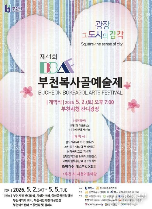 [경기뉴스원/경기뉴스1] | 부천시는 ‘제41회 부천복사골예술제’를 5월 2일부터 5일까지 4일간 부천시청 잔디광장과 중앙공원, 부천아트센터 일원에서 연다.