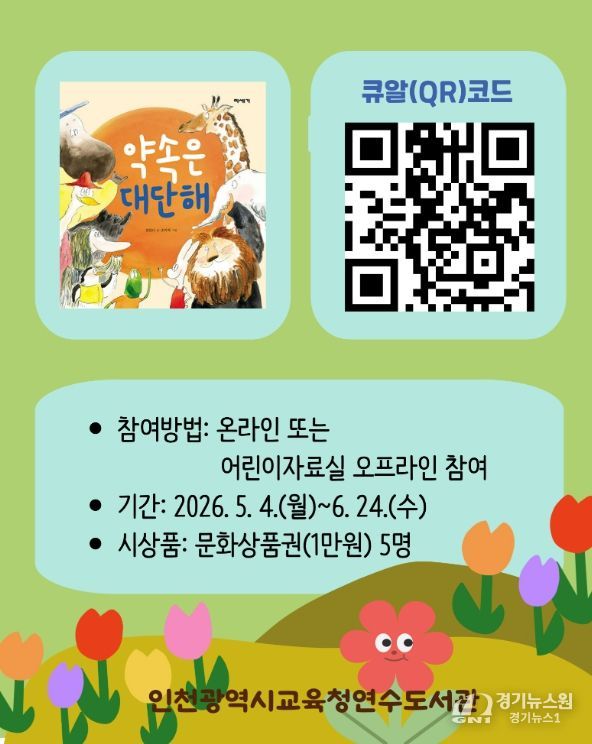 [경기뉴스원/경기뉴스1] | 인천광역시교육청연수도서관은 어린이들이 다양한 도서를 접할 수 있도록, 5~6월 어린이 독서퀴즈 ‘책 속에서 보물찾기’를 운영한다.