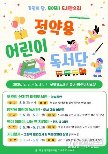 [경기뉴스원/경기뉴스1] | 남양주시는 가정의 달을 맞아 5월 5일부터 31일까지 정약용도서관에서 ‘모여라! 정약용 어린이 독서단’ 행사를 운영한다고 28일 밝혔다.