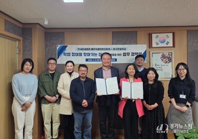 [경기뉴스원/경기뉴스1] | 제주도교육청 하귀초등학교는 27일 한국미술협회 제주특별자치도지회와 ‘학생 참여형 찾아가는 미술관’ 운영을 위한 업무협약(MOU)을 체결했다.