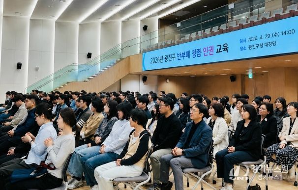 [경기뉴스원/경기뉴스1] | 광진구가 4월 29일 광진구청 대강당에서 공직윤리 확립과 상호 존중하는 조직문화 조성을 위한 ‘반부패 청렴·인권 교육’을 실시했다.