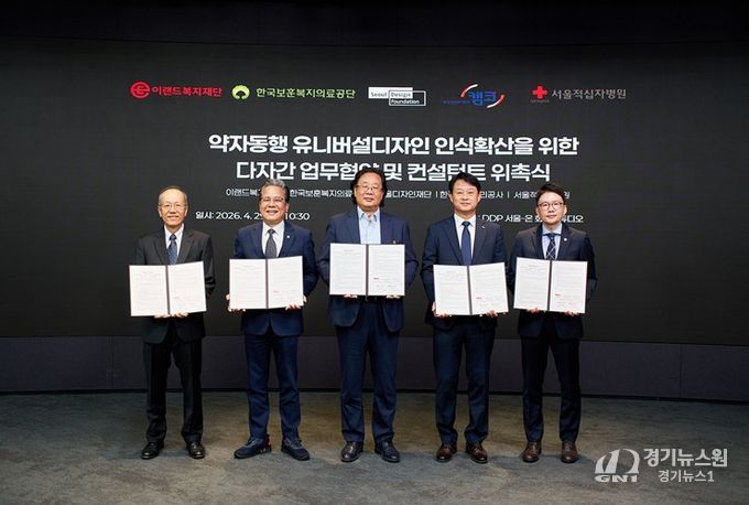 [경기뉴스원/경기뉴스1] | 서울디자인재단은 4월29일 DDP(동대문디자인플라자)에서 한국자산관리공사, 한국보훈복지의료공단, 서울적십자병원, 이랜드복지재단과 함께 ‘약자동행 유니버설디자인 인식확산’을 위한 다자간 업무협약을 체결했다.