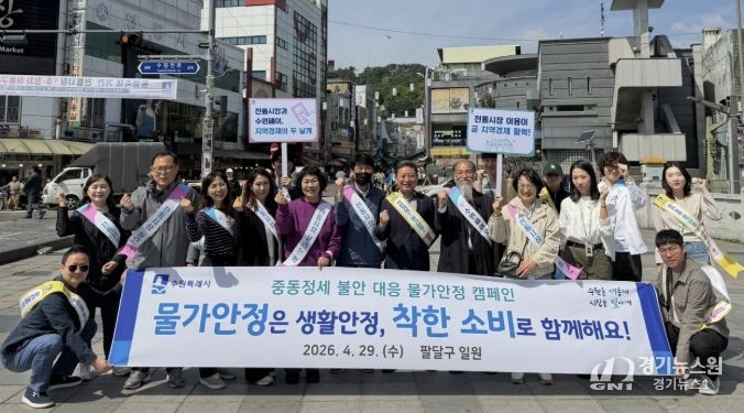 [경기뉴스원/경기뉴스1] | 수원시 팔달구는 최근 불안정한 중동정세에 따른 경제 위기에 대응하고자 지난 29일, 지동시장과 못골시장에서 ‘전통시장‧골목상권 활성화 및 물가안정 캠페인’을 전개했다.