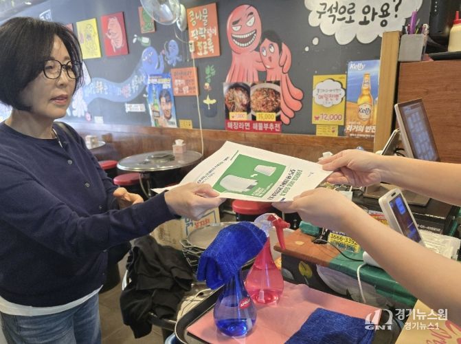 [경기뉴스원/경기뉴스1] | 수원시 팔달구 매산동은 지난 27일, 관내 음식점 및 카페를 대상으로 ‘일회용품 사용 줄이기’ 홍보 활동을 전개했다.