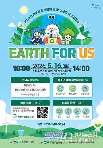 [경기뉴스원/경기뉴스1] | 파주시청소년재단 교하청소년문화의집에서는 청소년의 건강한 성장과 성년의 의미를 되새기기 위해 2026년 5월 16일 '청소년의 달 및 성년의 날 기념행사 ‘EARTH FOR US’'를 개최한다.