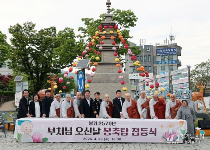 [경기뉴스원/경기뉴스1] | 불기 2570년 부처님오신날을 맞아 가평군민과 함께하는 봉축탑 점등식이 4월 29일 가평군청 앞 회전교차로에서 봉행됐다.