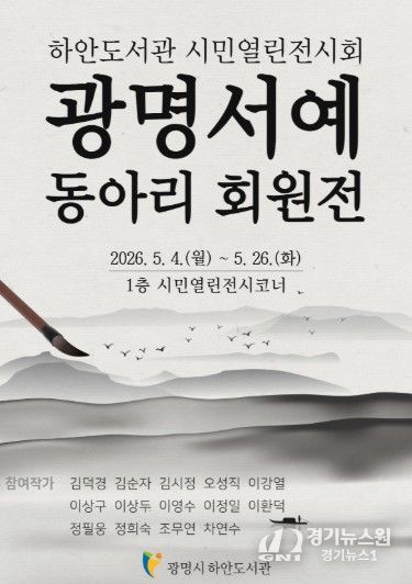 [경기뉴스원/경기뉴스1] | 광명시 하안도서관은 오는 5월 4일부터 28일까지 1층 시민열린전시코너에서 서예 동아리 ‘광명서예’ 회원전을 연다.