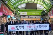 [경기뉴스원/경기뉴스1] | 최민호 세종특별자치시장이 설 명절을 앞두고 세종대평시장에서 장을 보며 전통시장 활성화와 지역 상권 회복에 힘을 보탰다. 최민호 시장은 12일 시 직원과 관내 공공기관 임직원 등 80여 명과 함께 금남면 용포리 세종대평시장에서 각 점포를 돌며 명절 물가동향을 파악하고 명절 제수용품과 생필품을 구매했다. 세종대평시장은 1940년대부터 자연 발생한 세종시 남부권의 유일한 전통시장으로, 지역민들에게 꾸준한 사랑을 받고 있다. 특히 신도시에서 가장 가까이 있는 전통시장의 특성을 살려 공무원과 공공기관 근로자의 외식 수요를 노린 음식점 중심의 상권으로 성장 중이다. 이에 따라 시는 2023∼2024년 ‘대평시장 밤나들 야시장’, 2025년 ‘맛대맛 대평시장 스탬프투어’ 등 행사 지원을 통해 전통시장 살리기에 집중하고 있다. 앞으로도 세종대평시장이 신도시 주민들의 수요에 빠르게 발맞출 수 있도록 상인회와 지속적으로 협력해 현대화 사업 등을 지원할 계획이다. 최민호 시장은 “설 명절을 맞아 많은 시민이 전통시장을 찾아 지역 상권 활성화에 함께 해주길 바란다”며