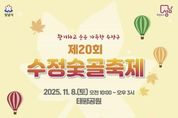[경기뉴스원/경기뉴스1] | ‘제20회 수정숯골축제’가 오는 11월 8일 오전 10시~오후 3시 태평공원(수정구 수정로 7)에서 열린다. 성남시 수정구가 후원하고 수정숯골축제 추진위원회가 주최·주관해 열리는 이번 행사는 ‘활기차고 웃음 가득한 수정구’를 주제로 진행된다. 이날 태평공원 다목적 잔디마당에서 성남시립국악단의 식전공연을 시작으로, 시흥동의 난타 공연, 수진1동의 라인댄스 등 8개 동별 대표 공연과 제기차기, 단체투호 등의 민속놀이 경연이 펼쳐진다. 초청 가수의 축하공연도 열린다. 출연진은 ‘바람 바람 바람’ 등의 히트곡을 가진 김범룡, 쌍권총 춤으로 유명한 ‘오직 하나뿐인 그대’의 심신, 미스트롯2에 출연해 화제를 모은 주미 등이다. 올해 성남 갓텔런트 예술단으로 선발된 아인스바움(윈드 앙상블), 김수아(보컬), 윤여찬·임민영(라틴댄스) 팀도 출연해 행사 분위기를 달군다. 행사장 곳곳에는 배틀 로봇, 드론 축구 등의 4차산업 체험존, 페이스페인팅, 캐리커처, 자원순환 활동 등의 체험 부스, 먹거리 부스 등 다양한 즐길 거리가 마련된다. 이 외에도 텔레