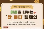 [경기뉴스원/경기뉴스1] | 시흥시장곡종합사회복지관은 연말을 맞아 지역사회에 따뜻한 마음을 전하기 위한 ‘마음을 나누는 한 마디’ 캠페인을 진행한다. 이번 캠페인은 이웃을 향한 응원의 말, 위로의 말, 사랑의 말을 담은 짧은 문장을 시민들로부터 응모 받아 서로에게 위로와 용기를 건네는 나눔의 장을 만들기 위해 마련됐다. 참여자는 직접 창작한 문장 또는 문학 작품 속 인용문 중 마음을 전하고 싶은 한 문장을 제출할 수 있다. 응모 기간은 11월 3일부터 11월 14일까지이며, 시흥시민이라면 누구나 참여할 수 있다. 참여 방법은 시흥시장곡종합사회복지관 1층 복도 현장 신청 또는 온라인으로 하면 된다. 선정된 문장은 내부 심사를 거쳐 캘리그래피 작품으로 제작되며, 오는 12월 시흥시장곡종합사회복지관 복도갤러리에서 전시된다. 전시된 작품은 시민들에게 한 해를 따뜻하게 마무리할 수 있는 작은 위로의 메시지로 전달될 전망이다. 시흥시장곡종합사회복지관 관계자는 “짧은 문장이지만, 시민 한 사람 한 사람의 따뜻한 마음이 모여 이웃에게 큰 위로가 될 것”이라며 “많은 시민이 이번 캠페인에 참여해 따뜻한 시흥을 함께