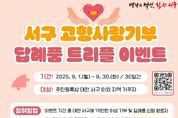 [경기뉴스원/경기뉴스1] | 대전 서구는 9월 30일까지 한 달간 ‘서구 아트페스티벌’과 연계한 ‘고향사랑기부 답례품 트리플 이벤트’를 진행한다고 4일 밝혔다. 이번 이벤트는 9월 4일 ‘고향 사랑의 날’을 기념하고, 오는 10월 10일부터 12일까지 개최되는 서구 아트페스티벌과 연계함으로써 고향사랑기부제에 대한 관심과 참여를 늘리기 위해 마련됐다. 주민등록상 대전 서구 외 지역 거주자가 ‘고향사랑e음’ 홈페이지 접속 또는 NH농협을 방문하여, 서구에 고향사랑기부금을 10만 원 이상 기부하고 답례품을 신청하면 자동으로 이벤트에 응모된다. 추첨을 통해 △3만 원 상당의 답례품 추가 제공(50명) △아트페스티벌 개막식 무대 앞 좌석 및 스탠딩석 제공(80명) 등의 혜택이 주어진다. 서철모 청장은 “고향사랑기부제가 지역 발전을 위한 소중한 재원으로 자리매김할 수 있도록 다양한 참여 기회를 마련하고 있다”며 “이번 이벤트가 기부 문화 확산과 함께 서구 아트페스티벌의 열기를 더하는 계기가 되기를 바란다”고 말했다. 고향사랑기부제는 개인의 주민등록상 주소지를 제외한 다른 지자체에 연간 최대 2,0