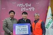 [경기뉴스원/경기뉴스1] | ㈜영진스테이지는 지난 27일 양주시 남면행정복지센터를 방문해 지역 내 어려운 이웃을 위한 이웃돕기 성금 100만 원을 전달했다. 남면 상수리에 위치한 ㈜영진스테이지는 특수조명·무대기계장치·호텔 연회장 설비 등 무대기술 분야 전문기업이다. 이날 기부식에는 김동현 ㈜영진스테이지 대표, 백운구 남면장, 김영권 남면 지역사회보장협의체 공동위원장이 참석해 따뜻한 나눔의 의미를 함께 했다. 기부금은 사회복지공동모금회를 통해 남면 관내 취약계층을 위해 사용될 예정이다. 김동현 대표는 “지역에서 받은 사랑을 다시 지역에 돌려드리고 싶었다”며 “작은 도움이지만 어려운 이웃들에게 힘이 되기를 바란다”고 전했다. 백운구 남면장은 “지역 기업의 따뜻한 참여가 큰 힘이 된다”며 “소중한 성금이 꼭 필요한 분들께 전달되도록 최선을 다하겠다”고 말했다. 김영권 공동위원장 역시 “협의체는 민관이 함께 복지 사각지대를 살피고 지원하는 역할을 하고 있다”며 “이런 뜻깊은 나눔이 더 많은 이웃들에게 희망이 되기를 기대한다”고 전했다. 남면은 앞으로도 지역 기업 및 단체와의 협력을 통해 지속적