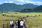 [경기뉴스원/경기뉴스1] | 추석 연휴 순천만습지를 찾은 방문객들이 가을 정취 속에서 갈대밭 산책을 즐기고 있다.