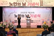 [경기뉴스원/경기뉴스1] | 여수시는 10월 경로의 달을 맞아 2일 진남체육관에서 제29회 노인의 날 기념행사를 개최했다. 노인의 날(10월2일)은 어르신에 대한 사회적 관심과 공경심을 높이고 감사의 뜻을 표하기 위해 정부가 제정한 법정기념일이다. 이날 행사는 정기명 시장, 백인숙 시의회 의장, 김명남 대한노인회 여수지회장, 시‧도의원, 어르신 등 900여 명이 참석한 가운데 식전 행사, 표창장 수여, 축하공연 순으로 진행됐다. 식전 행사에서는 시립국악단의 민요, 무용, 사물놀이 판굿 공연이 펼쳐졌고 기념식에서는 노인강령 낭독, 모범 노인 및 노인복지 증진 유공자 표창과 감사패 수여, 기념사와 축사가 이어졌다. 특히 2026여수세계섬박람회 성공개최를 응원하는 퍼포먼스가 진행돼 행사장에 모인 어르신과 내빈이 함께 섬박람회 성공을 기원하며 힘찬 구호를 외쳤다. 이어 어르신 장기자랑과 축하공연이 열려 흥겨운 분위기 속에서 행사가 마무리됐다. 정기명 시장은 기념사에서 "어르신들이 조금 더 편하게 따뜻하게 지내시도록 언제나 최선을 다하고 있다"며 “관광도시 여수의 발전과 변화의 순간