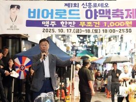 [경기뉴스원/경기뉴스1] | 신상진 성남시장은 17일 저녁 신흥로데오거리 종합시장 먹자골목에서 열린 ‘제1회 신흥로데오 비어로드 야맥축제’ 개막식에 참석해 관계자들을 격려하고 시민들과 소통했다. 이날 개막식에는 신 시장을 비롯해 도의원, 시의원, 상인회장 등 100여 명이 참석했다. 신 시장은 축사에서 “20대 시절 추억이 깃든 이곳은 1980년대 성남의 대표 번화가였다”며 “침체기를 겪었지만 이번 축제를 계기로 신흥로데오거리가 다시 활기를 되찾아 재도약하길 기대한다”고 말했다. 이어 “시는 앞으로도 원도심 상권 활성화를 위해 적극 지원하겠다”며 “이번 축제가 상인과 시민이 함께 즐기는 화합의 장이 되길 바란다”고 덧붙였다. ‘상권활성화 특화거리 지원사업'의 일환으로 마련된 이번 축제는 새롭게 조성된 ‘신흥로데오 별빛 감성 골목'에서 10월 18일까지 이틀간 진행된다. 시는 지난 5월 신흥로데오거리를 제6호 특화거리로 지정하고, 상인회와 함께 ▲시민참여형 야맥축제 ▲홍보 서포터즈 운영 ▲별빛감성 조형물 설치 등을 추진하고 있다.