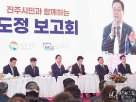 이날 보고회에는 박완수 도지사와 조규일 진주시장, 도·시의원, 진주시민 등 600여 명이 참석했다. 행사는 식전 공연에 이어 진주 지역 주요 현안 보고와 시민과의 대화 순으로 진행됐다.