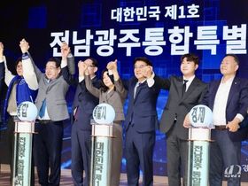 해남군과 해남교육지원청은 27일 해남문화예술회관 대공연장에서‘AI·에너지 수도 도약을 위한 해남미래 선언식’을 개최했다. 이날 행사에는 교육공동체와 주민 등 600여명이 참석해 AI·에너지 수도 도약을 준비하는 미래 비전을 공유했다.