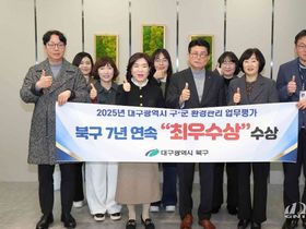 [경기뉴스원/경기뉴스1] | 대구 북구청은 대구광역시가 주관한 ‘2025년도 구·군 환경관리업무 평가’에서 7년 연속 최우수 기관으로 선정됐다.
