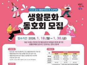 [경기뉴스원/경기뉴스1] | (재)달성문화재단은 1월 19일부터 30일까지 ‘2026 달성 생활문화동호회 프로젝트’에 참여할 동호회를 모집한다고 9일 밝혔다.
