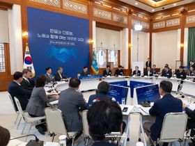 이 대통령은 "제가 여러 곳에서 노동자들의 조직률을 제고해야 한다는 말씀을 드리고 있는데, 그게 생각만큼 쉬운 일은 아닌 것 같다"며 "앞으로도 노동계가 단결을 통해 힘의 균형 조금이나마 회복하길 바라고 정부도 그렇게 될 수 있도록 노력하겠다"고 말했다.