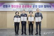 [경기뉴스원/경기뉴스1] | 서울 강동구는 지난 5일 구청에서 강동경찰서, 강동소방서, 마인드웰병원과 24시간 정신응급 공공병상 운영을 위한 업무협약을 체결하고 오는 15일부터 본격 운영한다고 밝혔다. 정신응급 상황은 정신질환 등으로 인해 환자 본인이나 타인의 안전과 건강에 심각한 위협이 되는 상태를 말한다. 그동안 구는 정신응급 상황 발생 시 병상 확보의 어려움으로 입원 절차가 지연되는 문제를 겪어왔다. 특히, 야간이나 주말, 공휴일에는 병상 확보가 쉽지 않아 응급환자의 신속한 치료에 어려움이 있었다. 이에 따라 24시간 가동 가능한 공공병상 확보의 필요성이 꾸준히 제기되어 왔다. 이에 구는 서울시 중랑구에 위치한 정신과 전문 의료기관인 마인드웰병원과 협력해 정신응급 공공병상 1개를 확보하고 병상 운영비를 지원할 계획이다. 이를 통해 위기 상황에 처한 정신응급환자가 신속하게 입원해 치료받을 수 있도록 지원하고, 증가하는 고위험 정신건강 문제에도 효과적으로 대응할 방침이다. 이번 협약에 따라 각 기관은 자‧타해 위험 등이 있는 고위험 정신응급환자 발생 시 긴밀히 협력해 신속한 응급진료와 적정 의료