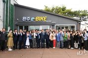 [경기뉴스원/경기뉴스1] | 완주군이 삼례 ‘쉬어가삼[례:]’ 유휴공간을 친환경 관광 거점으로 새롭게 탈바꿈 시키고, 체류형 관광객 유치를 위한 힘찬 시동을 걸었다. 30일 완주군은 삼례 ‘쉬어가삼[례:]’에서 ‘e-BIKE 자전거 대여소’ 개소식을 열었다. 이 자리에는 유희태 완주군수와 군의원, 지역주민 등 100여 명이 참석했다. 이날 첫선을 보인 자전거 대여소는 유휴공간을 활용해 지역 관광의 핵심 거점으로 재탄생시켜 주목을 받았다. 문화체육관광부의 ‘지역 자전거 여행 활성화’ 국가 공모사업에 선정돼 국비를 지원받아 추진됐으며, 올해부터 내년까지 2개년에 걸쳐 진행될 예정이다. 자전거 대여소는 삼례역에 내린 관광객 및 완주군민들에게 근대문화유산인 삼례문화예술촌을 지나 만경강 자전거길로 나아가는 ‘친환경 생태관광의 관문’ 역할을 수행하게 된다. 유희태 완주군수는 “버려진 공간을 재생해 완주 관광의 새로운 원동력을 만들고, 군민 여러분과 함께 그 출발을 축하하게 되어 매우 기쁘다”며 “오늘 문을 연 자전거 대여소를 시작으로 완주를 찾는 모든 분들이 만족하는 체류형 관광도시를