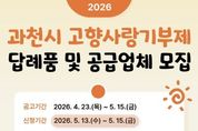 [경기뉴스원/경기뉴스1] | 과천시는 고향사랑기부제 활성화를 위해 답례품 공급업체를 공개 모집한다고 밝혔다. 시는 최근 열린 답례품선정위원회를 통해 답례품 분야를 확대하고 품목 제한을 없애기로 했다. 이에 따라 관내 사업장을 둔 업체를 대상으로 공개 모집을 진행한다. 신청 대상은 답례품으로 제공할 수 있는 물품을 생산·제조하고 배송이 가능한 업체다. 참여를 희망하는 업체는 과천시 누리집 ‘과천소식'고시‧공고’에서 신청 서식을 작성한 뒤, 5월 13일부터 15일까지 전자우편 또는 과천시청 방문을 통해 서류를 제출하면 된다. 시는 접수된 업체를 대상으로 답례품선정위원회 심의를 거쳐 공급업체와 답례품을 최종 선정할 계획이다. 선정된 답례품은 오는 6월부터 ‘고향사랑e음’을 통해 기부자들에게 제공될 예정이다. 이번 모집은 기부자에게는 선택의 폭을 한층 넓히고, 참여 업체에는 전국 단위 홍보와 판로 확대의 기회를 제공하는 계기가 될 것으로 기대된다. 시 관계자는 “과천시만의 특색을 살린 경쟁력 있는 답례품을 적극 발굴하여 고향사랑기부제의 취지를 살리고, 지역경제 활성화로 이어질 수 있게 하겠다”