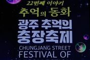 [경기뉴스원/경기뉴스1] | 가을밤, 광주 동구 도심이 한 편의 동화로 물들었다. 광주 동구는 ‘추억의 동화’를 주제로 열린 제22회 광주 추억의 충장축제가 금남로와 충장로 일대를 동심으로 물들이며, 시민과 관광객들이 함께 웃고 추억을 나눈 광주의 대표 명품축제로 거듭났다고 밝혔다. 올해 충장축제는 지난 15일부터 19일까지 닷새간 ‘추억의 동화’를 주제로 충장로, 금남로, 5·18민주광장, 국립아시아문화전당 등 동구 전역에서 펼쳐졌다. 축제는 ‘우리의 기억 속에서 잠들어 있던 동화 속 이야기들이 이 가을, 충장로를 따라 은은한 빛을 머금고 깨어난다’는 메시지 아래, 각 공간은 어린 시절의 동화를 떠올리게 하는 조명과 오브제로 채워졌다. 거리 곳곳에는 ‘이상한 나라의 앨리스’, ‘백설공주’, ‘선녀와 나무꾼’ 등 우리에게 친숙한 이야기들이 예술적 조형물로 시민들과 만났으며, 광주은행과 함께 신서석로에 마련한 ‘추억의 테마거리’도 7080 추억을 선사하며 시민들의 발길과 눈길을 동시에 사로잡았다. ●참여로 완성된 축제… 시민 체험 프로그램 ‘후끈’ 올해 충장축제의 진정한 주인공은 바로 시민이었다. 시민들은 주먹밥