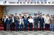 [경기뉴스원/경기뉴스1] | 제천시는 지난 1일 제천시청 5층 청풍호실에서 '2025년 제천시 국제대회'성과보고회를 개최했다. 보고회에는 김창규 제천시장, 박영기 제천시의회 의장, 김경석 대한롤러스포츠연맹 회장(이상 공동조직위원장), 장재돈 대한체조협회 고문과 안성국 제천시체육회장(집행위원장), 오재성 제천시체조협회장, 최호열 제천시롤러스포츠연맹회장(이상 공동 사무총장) 및 유관기관, 단체장 3명과 종목단체 임원 및 회원 50여 명이 참석했다. 이날 보고회는 올해 제천시에서 열린 국제대회인 '2025 기계체조 아시아선수권대회(6.1.~6.15.)'와 '2025 아시아 롤러스케이팅 선수권대회(7.19.~7.30.)'의 성공 개최를 기념하고, 대회 관계자들의 노고를 격려하며 성과를 공유하는 자리였다. 행사는 유공 기관·단체에 대한 감사패 수여와 유공자 표창 순으로 진행됐다. 제천시장 감사패는 대회 유치와 개최를 주관한 ▲대한롤러스포츠연맹(회장 김경석) ▲제천시롤러스포츠연맹(회장 최호열) ▲대한체조협회(공석) ▲제천시체조협회(회장 오재성)에 수여됐다. 또한, 두 대회를 실질적으로 준비하고 집행한 ▲제천시체육회(회장