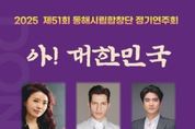 [경기뉴스원/경기뉴스1] | 동해시는 오는 11월 1일 오후 5시, 동해문화예술회관 대공연장에서 ‘제51회 동해시립합창단 정기연주회’를 개최한다. 전은정 지휘자 등 45명의 단원으로 구성된 동해시립합창단은 창단 37주년을 맞아 ‘아! 대한민국’을 주제로 국민적인 공감대와 희망을 노래하는 감동의 무대를 준비하고 있다. 이번 정기연주회는 우효원 작곡의 주제곡 ‘아! 대한민국’을 비롯해 다양한 프로그램으로 구성된다. 특히 섬세하면서도 파워풀한 음색의 테너 이승민과, 역동적인 무대를 선사하는 모듬북 연주자 임원식이 특별 출연해 공연의 풍성함을 더한다. 또한 ‘남촌’, ‘동무생각’, ‘별을 캐는 밤’ 등 한국인이 사랑하는 서정적인 가곡을 통해 깊은 향수를 자극하고, 비제의 오페라 카르멘 중 ‘집시의 노래’, 오펜바흐의 호프만의 이야기 중 ‘호프만의 뱃노래’ 등 합창 명곡을 비롯해 ‘이별의 노래’ 등 감성적인 곡들로 시민들에게 극적인 감동을 선사할 예정이다. 이번 공연의 사회는 이탈리아 출신 방송인 알베르토 몬디가 맡는다. JTBC 비정상회담, MBC every1 어서와 한국은 처음이