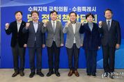 [경기뉴스원/경기뉴스1] | 이재준 수원시장은 5일 수원 지역 국회의원들과 정책간담회를 열고, “수원화성문화제를 비롯한 수원화성 3대 축제가 세계 3대 글로벌 축제로 도약할 수 있도록 힘을 보태달라”고 당부했다. 이날 간담회에는 이재준 시장과 백혜련(수원시을)·김영진(수원시병)·김승원(수원시갑)·염태영(수원시무)·김준혁(수원시정) 의원, 김현수 제1부시장, 현근택 제2부시장 등이 참석했다. 이재준 시장은 이날 간담회에서 ‘수원화성 3대 축제 글로벌 K-컬처 육성 전략’, ‘첨단과학 R&D 혁신도시를 만들기 위한 리딩 기업 유치 전략’ 등을 소개하고, “전략이 실현될 수 있도록 적극적으로 협력해 달라”고 말했다. ‘수원화성 3대 축제 글로벌 K-컬처 육성 전략’은 정부의 투자를 이끌어 정조대왕 능행차 공동재현(K-퍼레이드), 수원화성문화제(K-페스티벌), 수원화성 미디어아트(K-나이트)를 우리나라를 대표하는 글로벌 축제로 만드는 것이다. ‘첨단과학 R&D 혁신도시를 만들기 위한 리딩 기업 유치 전략’은 대기업의 연구소를 수원 경제자유구역 내에 유치해 R&D(연구개발) 벨트를 형성하는 것이다. &nbs