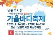 [경기뉴스원/경기뉴스1] | 광주 동구는 오는 26~27일 이틀간 남광주시장 공영주차장 일원에서 ‘활력장! 가을 바다 축제’를 개최한다고 밝혔다. 남광주시장 문화관광형시장 육성사업 일환으로 열리게 된 이번 행사는 광주 대표 수산물시장인 남광주시장을 전국에 알림과 동시에 지역 대표 축제로 육성하기 위해 마련됐다. 26일 오후 2시부터 농악놀이, ‘수산물 가요제’ 예선전, 전어잡이 체험 등 식전 행사가 펼쳐지며, 오후 5시 개막식을 시작으로 본격적인 행사가 열린다. 오후 6시부터는 가을 별미가 가득한 ‘바다 야시장’을 운영, 시민들의 발길을 이끌 예정이다. 이외에도 다양한 체험행사와 키즈존 등 다양한 콘텐츠로 채워지며 지역민들이 참여하는 ‘수산물 가요제’와 초대 가수 현진우의 공연도 예정돼 있어 모든 연령대가 함께 즐길 수 있는 축제가 될 전망이다. 이어 27일에도 역시 ‘바다 야시장’이 열리며, 문화동아리 경연 대회, DJ 댄스팀 공연 등도 펼쳐진다. 임택 동구청장은 “이번 행사를 통해 남광주시장에 새로운 활력을 불어 넣고 침체된 주변 상권이 활성화되길 기대한다”면서 “많은