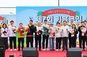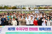 [경기뉴스원/경기뉴스1] | 용인특례시 수지구는 18일 아르피아 상부 체육시설에서 ‘제7회 수지구민 한마음 체육대회’를 개최했다. 수지구 체육연합회가 주최·주관한 이번 대회엔 구민 약 2000여 명이 참여해 승부차기, 볼풀공 바구니농구, 줄다리기, 계주 등으로 구민 모두 한마음으로 어우러지는 시간을 보냈다. 또 식전 공연인 동천동 훌라댄스, 신봉동 밸리댄스와 단국대학교 치어리딩팀 ‘아스테르’의 공연, 퓨전 장구, 보컬그룹 ‘뮤랑’, 마술사 홍승인, 초대 가수 김성환 등이 다채로운 무대를 선보였다. 행사장 곳곳에선 화분 만들기, 친환경 리필스테이션(세제 담아가기), MBTI 검사, 캘리그라피 체험, 키링 만들기, 구민 건강 서비스 안내 부스 등 체험 프로그램이 운영됐다. 이상일 시장은 “우리 수지구민들이 모처럼 한자리에 모여 우정을 나누면서 행사를 통해 행복한 시간을 많이 보내시라고 비가 그친 것 같다”며 “수지중앙공원은 축구장 76개 크기의 시민 힐링 공간으로 조성되고 있고, 상현3동 행정복지센터와 함게 건립되는 광교스포츠센터에는 25m레인 10개의 수영장이 들어서게 된다"며 "서울종합운동장역과 수