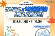 [경기뉴스원/경기뉴스1] | 서울 강북구는 구민들의 일상 속 건강관리 실천을 독려하기 위해 11월 1일부터 30일까지 한 달간 ‘북서울꿈의숲 모바일 걷기 챌린지’를 운영한다. 이번 프로그램은 강북구민이면 누구나 참여할 수 있으며, 북서울꿈의숲 내 주요 산책 구간을 코스로 정해 운영된다. 코스는 서문 아트센터를 출발해 동문 방문자센터, 상상톡톡 미술관을 거쳐 다시 서문 아트센터로 되돌아오는 총 2km로, 약 40분 정도가 소요된다. 참여를 원하는 구민은 모바일 앱 ‘워크온’을 설치한 뒤, ‘강북구 걷기 좋은길 X 북서울꿈의숲 모바일 걷기 챌린지’ 참여하기 버튼을 누르면 된다. 스마트폰의 위치 정보 및 서비스와 데이터를 활성화한 상태로 코스를 완주하고, ‘응모하기’ 버튼을 눌러야 참여가 완료된다. 완주자 중 추첨을 통해 200명에게 모바일 서울사랑상품권(1만원)이 제공될 예정이다. 구는 지난해 세 차례, 올해 두 차례 걷기 챌린지를 운영하며 일상 속 걷기 문화 확산에 힘써왔다. 이번 챌린지 또한 주민들의 참여 기회를 확대하고, 건강에 대한 관심을 높이는 계기가 될 것으로 기대하고 있다. 이순희 강북구청