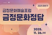 [경기뉴스원/경기뉴스1] | 부산시 금정구 금정문화재단은 금정구 예술인과 함께 지역 문화예술의 현안을 공유하고 미래 발전 방향을 모색하기 위한 2025 하반기 금정문화예술포럼 '금정문화정담'을 오는 11월 26일 오후 6시 30분, 아르코공연연습센터@금정 대연습실에서 개최한다고 밝혔다. 상반기 포럼이‘동행: 금정예술가 정답게 주고받는 이야기’를 주제로 지역 문화환경의 변화 속에서 예술 생태계의 현황을 공유하고 네트워킹의 중요성을 강조했다면, 하반기 포럼은 한 해의 활동을 돌아보고 향후 재단과 예술인이 함께 만들어갈 협력과 실천의 방향을 구체화하는 자리가 될 예정이다. 특히 이번 포럼은‘금정구 거주예술인 모집’을 통해 약 100명의 지역 예술가가 참여할 예정이다. 포럼에서는 지역문화 진흥과 예술가 참여 확대를 위한 다양한 의견을 수렴하고, 예술 장르별 교류와 네트워킹을 통해 협력 기반을 강화하는 시간을 갖는다. 또한 참가 예술인에게는 소정의 참석비가 지급될 예정이다. 윤일현 금정문화재단 이사장은 “금정의 예술인들과 함께 만들어가는 포럼이 지역 문화의 밝은 내일을 여는 원동력이 되길 바라며, 예술가들의