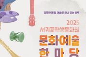 [경기뉴스원/경기뉴스1] | 제주도교육청 서귀포학생문화원은 29일 문화원에서 ‘2025 서귀포학생문화원 문화예술 한마당’을 개최한다. 이번 행사는 ‘따뜻한 동행, 예술로 하나 되는 하루’를 주제로 학생과 보호자, 지역주민이 함께 어우러져 예술로 배우고 소통하는 문화예술공동체 축제로 마련됐다. 문화예술·예술영재·평생교육 수강생들이 한 해 동안 갈고닦은 실력을 선보이며 지역사회가 함께 참여하고 공감하는 뜻깊은 자리다. 특히 예술을 통해 함께 배우고 성장하는 지역 문화예술공동체 실현을 목표로 하며 수강생들의 작품을 통해 예술교육의 성과를 공유하고 세대 간 소통과 지역사회 참여의 기회를 제공한다. 이번 행사는 발표마당, 전시마당, 체험마당으로 운영된다. 발표마당에서는 문화예술·평생·예술영재교육 참가자 등 50개 팀이 무대에 올라 음악, 합창, 댄스, 밴드, 케이팝(K-pop) 공연 등 다채로운 무대를 선보인다. 전시마당에서는 수강생과 동아리, 예술영재교육 참가자가 제작한 드로잉, 회화, 조형, 제주어 시화 등 창의적 작품 390점이 전시된다. 체험마당에서는 과장 그림