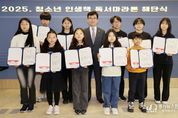[경기뉴스원/경기뉴스1] | 충청북도교육청 직속기관 교육도서관은 6일, 청소년들의 꾸준한 독서활동을 장려하고 독서문화 확산을 위한 2025년 청소년 인생책 독서마라톤 해단식을 개최했다. 지난 3월부터 시작한 청소년 인생책 독서마라톤은 11월까지 총 141교에서 초등학생 552명, 중학생 260명, 고등학생 36명 등 총 848명의 학생이 참여했다. 독서마라톤에는 487명의 학생이 완주했으며, 구간별 완주인원은 ▲개권유익(開卷有益:7편 이상) 211명 ▲독서삼매(讀書三昧:14편 이상) 70명 ▲수불석권(手不釋卷:21편 이상) 206명이다. 학교 단위로 함께 완주한 단체팀은 총 5팀으로, 개권유익은 개신초(23명), 산남초(19명), 옥동초(13명), 송절중(12명) 등 4팀이고, 수불석권에는 청안초(5명) 1팀이 독서 여정을 마무리했다. 올해는 완주자를 대상으로 '나만의 인생책 독후감 공모전'을 새롭게 운영했으며, 심사를 통해 총 11명의 수상자가 선정됐다. 독후감 공모전 입상자 중 4명의 학생이 무대에 올라 참여 소감과 나만의 인생책을 소개하는 발표를 진행하며, 학생들은 7개월간의 독서