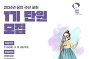 [경기뉴스원/경기뉴스1] | 포천문화관광재단은 지역 아동·청소년을 위한 문화예술교육 프로그램 ‘2026 꿈의 극단 포천’의 1기 신규 단원을 오는 3월 12일까지 모집한다. ‘꿈의 극단’은 문화체육관광부가 주최하고 한국문화예술교육진흥원과 포천문화관광재단이 주관하며 포천시가 후원하는 사업으로, 아동·청소년이 예술 활동을 통해 자존감을 키우고 공동체 의식을 함양할 수 있도록 지원하는 문화예술교육 프로그램이다. 이번 ‘2026 꿈의 극단 포천’은 일반적인 연극 교육을 넘어 한국 고유의 전통 소리와 춤, 악기가 어우러지는 ‘국극(전통 뮤지컬)’을 특화 교육 과정으로 운영한다. 이를 통해 지역 아동·청소년들이 전통 예술을 놀이처럼 친숙하게 접하고, 우리 문화에 대한 이해와 창의적 표현 능력을 함께 키울 수 있도록 지원할 계획이다. 모집 대상은 초등학교 3학년부터 중학교 2학년까지이며, 해당 연령에 포함되지 않는 초등학교 1·2학년 아동도 ‘예비 단원’으로 신청할 수 있다. 모집 인원은 총 30명이다. 최종 선발된 단원에게는 오는 4월부터 11월까지 포천38문화예술창작소에서 매주 월요일 오후 4시부터 7시까지