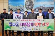 [경기뉴스원/경기뉴스1] | 진도군이 전라남도가 주관한 ‘2025년 전라남도 나무심기 평가’에서 ‘대상’을 받았다. 이번 평가에서는 전남의 22개 시군을 대상으로 ▲나무심기 실적 ▲홍보 활동 ▲신규 시책 발굴 ▲예산 활용 등 전반적인 추진 과정을 종합적으로 심사했다. 진도군은 공원관리사업소를 중심으로 녹지 공간 조성 사업을 체계적으로 추진하며 높은 평가를 받았다. 특히, 최근 3년 동안 ‘나무심기 평가’에서 ▲2023년 우수상 ▲2024년 최우수상▲2025년에는 영예의 대상을 받으며, 3년 연속 수상과 더불어 평가 등급이 꾸준히 상승하는 의미 있는 성과를 거뒀다. 진도군은 2025년 나무 식재 실적 역시 군 단위에서 최고 수준을 기록했다. 주민들의 생활권을 중심으로 꽃길과 가로수길을 넓히고, 마을 경관을 살리는 녹지 공간을 조성했으며, 주민들이 직접 참여하는 꽃길 가꾸기까지 다양한 녹지 정책을 펼치며 군민이 체감하는 녹지 환경을 만들어 왔다. 김희수 진도군수는 “이번 수상은 현장에서 묵묵히 노력해 온 직원들과 함께 참여해 주신 군민 여러분이 만들어낸 값진 성과다”라며, “앞