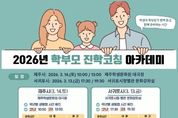 [경기뉴스원/경기뉴스1] | 제주특별자치도교육청은 대입 정보 제공을 위한 ‘2026년 학부모 진학코칭 아카데미’를 3월 13일 서귀포시청 문화강좌실과 14일 제주학생문화원에서 개최한다. 학부모 진학코칭 아카데미는 대입을 준비하는 수험생과 보호자를 대상으로 매년 운영되는 대학 진학 정보 제공 프로그램으로 도교육청 제주진로진학지원센터가 주관하며 올해는 지역별 참여 기회를 확대하기 위해 제주시와 서귀포시에서 각각 개최하고 학년별 특성에 맞춰 대상을 구분해 운영한다. 이번 설명회에는 다년간 고3 진학 지도를 맡아 온 대입지원관들이 강사로 나서 고3 학부모에게는 2027학년도 대입 전형과 주요 변화 사항을 고1·2 학부모에게는 2028학년도 대입 개편 주요 내용을 중심으로 알기 쉽게 안내할 예정이다. 세부 일정은 서귀포시 지역의 경우 3월 13일 오후 5시 30분(고1·2), 오후 7시 30분(고3) 서귀포시청에서 진행되며 제주시 지역은 3월 14일 오전 10시(고1·2), 오후 1시(고3) 제주학생문화원 대극장에서 열린다. 참가 신청은 27일 오전 9시부터 3월 10일 오후 6시까지 제주진로진학지원센터 누