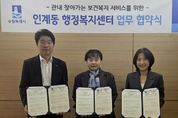[경기뉴스원/경기뉴스1] | 수원시 팔달구 인계동은 지난 24일, 지역사회보장협의체과 한전MCS(주) 경기지사 및 직할지점과 함께 취약계층 발굴과 지속적인 인적안전망 활동 참여를 위한 업무 협약을 체결했다. 한전MCS(주)는 전력 현장 서비스 및 전력량계 연관 사업을 수행하는 공공기관이다. 전기 검침·청구·체납관리 등 공공서비스를 통해 국민의 효율적인 전기 사용에 기여하고 있다. 이번 협약은 지역 내 위기가구를 조기에 발견해 신속한 지원으로 연계하기 위한 민‧관 협력 복지안전망을 구축하고자 추진됐다. 한전MCS(주) 경기지사와 경기지사직할지점은 소속 직원의 전기 검침 업무를 활용해 위기가구를 선제적으로 발굴하고 복지 사각지대 발굴 캠페인 참여하며, 후원금 기탁 등 지역공헌 활동에도 긴밀히 협력할 계획이다. 박선옥 인계동장(지역사회보장협의체 공공위원장)은 “관내 취약계층을 위한 업무 협약에 참석해 주신 한전MCS(주) 경기지사 및 경기지사직할지점 관계자분들께 감사드린다”며 “이번 협약이 단순한 약속을 넘어 실질적인 복지안전망으로 작동할 수 있도록 유관기관과 긴밀히 협력해 복지 사각지대 없는 인계동을 만들어 가겠다
