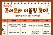 [경기뉴스원/경기뉴스1] | 동해교육도서관은 11월 28부터 30일까지 3일간 독서·문화 어울림 축제를 운영한다. 이번 축제는 2025년 한 해를 마무리하는 행사로 ▲문화활동 강좌 수강생들의 작품 전시를 비롯하여 ▲유·초등 6개 강좌를 대상으로 공개수업 ▲미션! 내가 독서왕 ▲문화공연 등 남녀노소 누구나 참여할 수 있는 다채로운 프로그램으로 구성됐다. 29일에는 ‘책 읽는 마법사’ 공연과 함께 ‘과일 생크림 케이크’ 만들기를 비롯하여 총 4가지 체험행사를 진행하며, 영화 속 주인공이 되어보는 ‘캐릭터 코스튬 포토존’ 운영 등 다양한 참여형 도서관 행사가 마련됐다. 안은희 관장은 “풍성한 볼거리와 참여형 독서·문화 행사를 통해 독서가 일상이 되고 평생학습 문화가 자리 잡길 기대한다”며 “많은 시민들이 가족과 함께 축제를 즐기며 소중한 추억을 만들기를 바란다”고 말했다. 축제 프로그램은 사전 신청과 현장 신청을 병행하여 운영할 예정이며, 자세한 일정과 신청 방법은 동해교육도서관 누리집 또는 전화로 문의하면 된다.