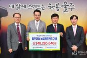 [경기뉴스원/경기뉴스1] | NH농협은행 울주군지부가 25일 울주군에 제휴카드 적립기금 1억4천828만원을 전달했다. 울주군은 이날 군청 소회의실에서 이순걸 울주군수, 이명주 NH농협은행 울주군지부장 등이 참석한 가운데 NH농협은행 울주군 제휴카드 적립기금 전달식을 가졌다. 이번에 울주군이 전달받은 적립기금은 총 1억4천828만원으로, 울주군과 NH농협은행의 제휴카드 협약에 따라 적립된 금액이다. 울주군이 지난 한 해 공무에 이용한 기관카드 및 보조금 전용카드, 소속 공무원이 사용한 복지카드 등의 사용금액 0.1~1.0%를 포인트로 적립해 조성했다. 적립기금은 기관카드와 보조금 전용카드의 사용 활성화에 따라 매년 조금씩 증가하는 추세이며, 최근 5년 동안 전달된 적립기금 합계액은 6억5천여만원에 달한다. 울주군은 전달받은 기금을 세입 처리해 시책 사업의 재원으로 활용할 방침이다. 이순걸 울주군수는 “전달받은 기금은 울주군민의 복리 증진을 위해 소중히 사용하겠다”며 “앞으로도 지역사회가 꾸준히 발전할 수 있도록 NH농협은행 울주군지부가 함께 노력해달라”고 말했다.