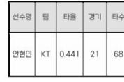 [경기뉴스원/경기뉴스1] | KT 안현민이 2025 신한 SOL뱅크 KBO 리그 7월 월간 MVP로 선정됐다. KT 선수로는 2023시즌 8월 쿠에바스 이후 2년여 만의 월간 MVP이며, 야수로는 2020시즌 6월 로하스 이후 5년 1개월 만이다. 안현민은 기자단 투표 총 35표 중 24표(68.6%), 팬 투표 44만 7,304표 중 3만 2,578표(7.3%)로 총점 37.93점을 받아, 기자단 투표 5표, 팬 투표 24만 3,379표로 총점 34.35점을 기록한 한화 폰세를 제쳤다. 이번 시즌 KT의 중심 타자로 활약하고 있는 안현민은 7월 한달간 무려 타율 0.441을 기록하며 이 부문 리그 2위를 기록했다. 또한, 장타율과 출루율은 각각 0.706과 0.551로 해당 부문 1위에 올랐다. 또한, 7월 한달, 21경기를 소화하는 동안 30개의 안타를 기록하며 경기 수를 훌쩍 넘는 안타를 쳐냈다. 이에 더해 홈런 5개와 함께 타점도 14개를 기록하며 정확성에 더해 장타 및 클러치 능력까지 공격에서 전천후 활약을 펼쳤다. 안현민은 8월에도 9경기에 출장해 8안타(2루타 2개), 5타점, 5볼넷을